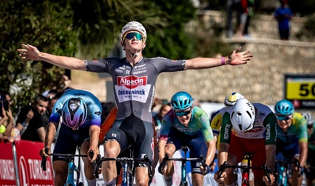 60.Cumhurbaşkanlığı Türkiye Bisiklet Turu'nun 164.4 kilometrelik Kemer-Kalkan etabını Alpecin-Deceuninck Takımı'ndan Tibor Del Grosso 3 saat 58 dakika 40 saniye ile kazandı. Yine bisikletçiler Kalkan finişine toplu halde geldi 21 yaşındaki gelecek vadeden Hollandalı Del Grosso etabı birinci bitirdi. Antalya Spordan Sorumlu Vali Yardımcısı Tahsin Aksu, Kemer Kaymakamı Ahmet Solmaz, Antalya Gençlik Spor İl Müdürü Yavuz Gürhan, Bisiklet Federasyonu Başkanı Emin Müftüoğlu, Asbaşkan Metin Cengiz, Asbaşkan Yunus Alperen Ayar, Bisiklet Federasyonu Yönetim Kurulu Üyesi Onur Şahin ve Genel Sekreter Sedat Fırat'ın katılımı ile Saat 12.00'de Kemer Olbia Park önünden verilen startla bisikletçiler zorlu etaba başladı. KLASİK TOPLU ÇIKIŞBirinci etabı kazanan Simon Dehairs, ilk defa profesyonel bir yarışın lideri durumunda. Dehairs, daha önce Tour du Loir-et-Cher gibi bazı ikinci kategori yarışlarda liderliği kazanmıştı. Starttan önce: "Bugün finişin benim için çok zor olduğunu düşünüyorum" dedi. İDDİALI İSİMLER2 sene önce Kalkan'da sona eren ikinci etabı, Alpecin-Deceuninck takımı, Jasper Philipsen ile kazanmıştı. Bugün ise, Cyclo-cross yıldızı Tibor Del Grosso, takımın ikinci bir zafer için en büyük şansı olarak görünüyor.Yine 2 sene önce Matteo Malucelli Kalkan'da etabı altıncı olarak tamamlamıştı. Bugün, puan klasmanında yeşil mayoyu taşıyor. İtalyan sporcu: "Finişe gelmeden son tırmanışın ardından olabilecek rüzgârdan biraz çekiniyorum " dedi. Birinci etabı 3. sırada tamamlayan Jules Hesters kırmızı mayoyu taşıyor. Bugün Tırmanış puanı kazanılacak kapılar 20. ve 109. km'lerde geçilecek.VE GERÇEK START VERİLİYORNötral alanda yaşanan bazı teknik aksaklıklar sonrasında saat 12.20 itibariyle yarışın gerçek startı verildi.11. kilometre geçilirken kaçış yok ve pelotonun temposunda tüm sporcular birlikte ilerliyor.BİR JAPON BİSİKLETÇİNİN ANALİZİ 60. Cumhurbaşkanlığı Türkiye Bisiklet Turunda yarışan bir de Japon bisikletçi bulunuyor. 26 yaşındaki Tomoya Koyama Burgos-Burpellet-BH takımı ile ilk kez bir pro takımında forma giyiyor. Tomoya, "Takımdaki güçlü İspanyol arkadaşlarımla iyi bir karakter ortaya koyacağız" diyerek etaba başladı. İLK KAÇIŞLAR12'nci kilometrede 2 sporcunun atağına rastladık. Başka 2 sporcu da onları yakalamak için peşlerine takıldı. Atak yapan 2 sporcu Antoine Berlin (BIKE AID) ve dünkü kaçışta da yer alan tanınmış Türk sporcumuz Ahmet Örken (Spor Toto) pelotondan koptu. Günün ilk kategorize tırmanışı çıkarken yarışın lideri Simon Dehairs ana gruptan koptu. Önde 4 sporcu bulunuyor: Beyaz mayonun sahibi Willie Smit (China Glory-Mentech) ve Vinzent Dorn (BIKE AID) önde olan Antoine Berlin ve Ahmet Örken'e katıldı. AHMET ÖRKEN TIRMANIŞ KAPISINI BİRİNCİ GEÇTİ.20. kilometrede geçilen tırmanış primi sonuçları bizim de yüzümüzü güldürdü. Sonuçlar şöyle.1. Ahmet Örken (Spor Toto), 2. Vinzent Dorn (Bike Aid), 3. Antoine Berlin (Bike Aid). Kapı geçildikten sonra lider dörtlünün peşindeki gruptan ataklar geldi. 22. km'de zaman farkı 35 saniye oldu. Bu arada Genel Ferdi Klasman Birincisi Simon Dehairs yeniden grubun içinde yer aldı.25'inci kilometrede dörtlü kaçış grubu, 1 dakika 25 saniye zaman avantajıyla önde pedal basmaya devam etti. Büyük bir atak yapan Mateusz Gajdulewicz (Masowsze Serce Polski) sonunda kaçış grubunu yakaladı ve sayı 5'e yükseldi. Konya takımından İhsan Ali Eğin de, onlarla pelotonun arasına girdi. Yarışta 30 kilometrenin ardından zaman farkı 1 dakika 45 saniyeye çıktı. AHMET ÖRKEN SPRİNT PRİM KAPISINI 2.GEÇTİ50.3 kilometre geçilirken etabın ikinci prim kapısı olan sprint dereceleri de belli oldu.Sonuçlar şöyle:1- Vinzent Dorn (BIKE AID), 2- Ahmet Örken (Spor Toto), 3-Willie Smit (China Glory-Mentech). Ahmet Örken'in tırmanış primi kapısını birinci geçmesinin ardından sprint kapısını da 2'nci geçmesi gerçekten alkışlanacak bir durumdu. TÜRKİYE GÜZELLİKLERİ PRİM KAPISINI AHMET ÖRKEN 3'ÜNCÜ GEÇTİ,Etabın 95.'inci kilometresi geride kalırken yine kaçış grubunda yer alan Ahmet Örken başarısına bir yenisini ekledi ve prim kapısını 3'üncü geçerek puan aldı. Sonuçlar şöyle:1-Mateusz Gajdulewicz (Mazowse Serce Polski), 2-Willem Smit (China Glory-Mentech), 3-Ahmet Örken (Spor Toto). Willem Smit 2'nci etabı zaman limiti içinde tamamladığı için beyaz mayoyu yarınki Fethiye-Marmaris etabında giyecek. Yeni zaman farkı 2 dakika 46 saniye olarak verildi. PELOTON HIZLANIYORFinişe 48 kilometre kala Alpecin-Deceunnick takımı ile Tietema Rockets ve Terengganu takımları tempo yapmaya başlayınca peloton hızlandı. Amaç öndeki kaçış grubunu yakalamak ve açılan zaman farkını eritmek. Bu aynı zamanda Kalkan finişinin de toplu halde yapılacağının bir işaretiydi. AHMET ÖRKEN SON TIRMANIŞ KAPISINI DA İKİNCİ GEÇTİEtabın başından bu yana girdiği mücadelelerde haklı bir başarı yakalayan Spor-Toto Takımın sporcusu Ahmet Örken son tırmanış kapısını da 2'nci geçerek kırmızı mayoyu giyme durumunda iddialı hale geldi. Sonuçlar şöyle:1-Vinzent Dorn (BIKE AID), 2-Ahmet Örken (Spor Toto), 3-Antoine Berlin (BIKE AID), 4- Mateusz Gajdulewicz (Mazowse Serce Polski). Etabın prim kapılarının geçişi tamamlandı. Yarın Fethiye-Marmaris etabında Vinzent Dorn kırmızı mayoyu giyecek. Örken rakibinin 1 puan gerisinde bulunuyor. Artık tüm hazırlıklar Kalkan finişi için yapılmaya başlandı. MAYOLAR SAHİPLERİNİ BULDUTurkuaz mayoyu Tibor Del Grosso’ya Türkiye Bisiklet Federasyonu Başkanı Emin Müftüoğlu ve Antalya Gençlik ve Spor İl Müdürü Yavuz Gürhan verdi. Yeşil mayoyu Jon Aberasturi’ye Bisiklet Federasyonu Asbaşkanı Metin Cengiz verdi. Beyaz mayoyu Willem Smit’e İçişleri Bakan