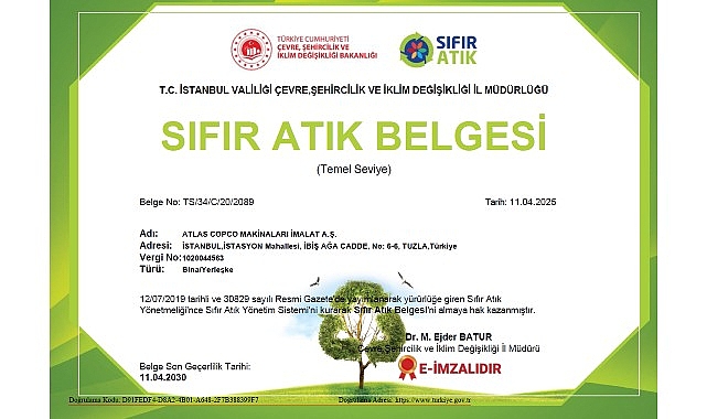 Atlas Copco Türkiye, çevresel sorumluluk ve sürdürülebilirlik hedefleri doğrultusunda önemli bir adım daha atarak Sıfır Atık Belgesi’ni almaya hak kazandı.