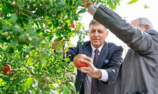 İzmir Büyükşehir Belediye Başkanı Dr. Cemil Tugay, Selçuklu çiftçilerle nar hasadı yaptı. Zeytinköy’de düzenlenen hasatta çiftçilerin taleplerini dinleyen Başkan Tugay, nar hasadının ardından mahsulün dünyaya açıldığı Deppo Efes’i ziyaret etti. Selçuklu üreticilerin başarısıyla İzmir’in diğer bölgelerine de örnek olacağını ifade eden Başkan Tugay, “Buradaki bu güzel çalışmayı daha ileriye götürmek için çaba göstermeye devam edeceğiz. Gelecek çalışarak güzel olacak. Tarıma sahip çıkmaya devam edeceğiz” dedi. Dünya nar ihracatında ilk 10 içerisinde yer alan İzmirli üreticiler hasat yaptı. İzmir Büyükşehir Belediye Başkanı Dr. Cemil Tugay, Selçuk’ta gelenekselleşen nar hasadında çiftçilerin bereketine ortak oldu. Selçuk’un Zeytinköy Mahallesi’nde düzenlenen nar hasadında Başkan Dr. Cemil Tugay’a Efes Selçuk Belediye Başkanı Filiz Ceritoğlu Sengel, İzmir Büyükşehir Belediyesi Genel Sekreter Yardımcısı İsmail Mutaf ve Büyükşehir bürokratları, Selçuk Belediyesi yöneticileri, meclis üyeleri, muhtarlar, kooperatif başkanları ve çok sayıda çiftçi eşlik etti. Rekolte ve üretim koşullarıyla ilgili bilgi aldı