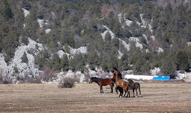 Büyükşehir yılkı atları için doğaya saman bıraktı Eynif Merası’na yonca ve saman balyaları bırakıldı Antalya Büyükşehir Belediyesi, İbradı ilçesine bağlı Eynif Merası’nda 90 bin dönümlük alanda yaşamlarını sürdüren yılkı atları için soğuk kış günlerinde beslenmelerini sağlamak amacıyla saman ve yonca balyası bıraktı.