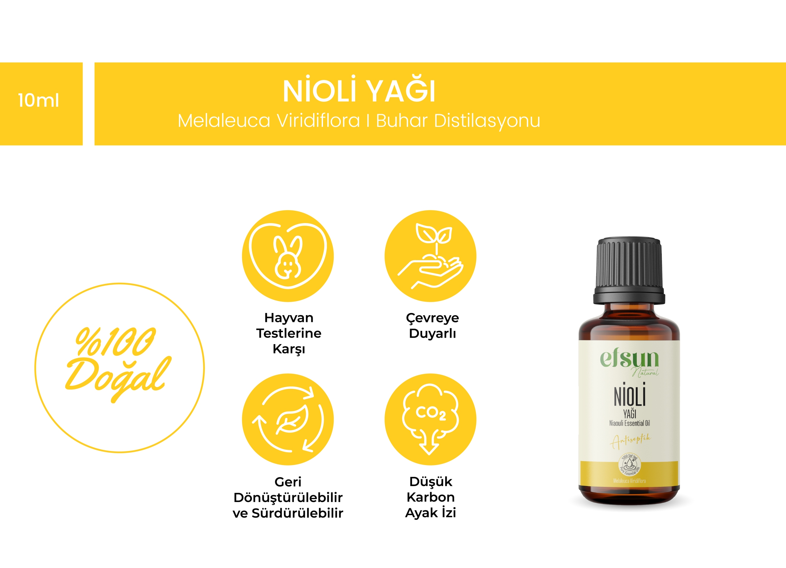 Nioli Yağı, özellikle cilt bakımında çok yönlü kullanımıyla dikkat çeken, şifalı bir uçucu yağdır. Melaleuca quinquenervia ağacından elde edilen bu yağ, Güneydoğu Asya ve Avustralya gibi bölgelerde uzun yıllardır kullanılmaktadır. Antiseptik özellikleriyle tanınan Nioli Yağı, doğal bir arındırıcı görevi görerek cildin temizlenmesine ve nefes almasına yardımcı olur. Bu yönüyle, özellikle akne ve sivilceye meyilli ciltlerde düzenli kullanımda fark edilir iyileşmeler sağlar.