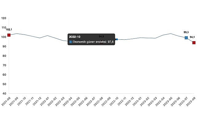 Ekonomik güven endeksi, güven endeksleri ve değişim oranları, Ağustos 2023