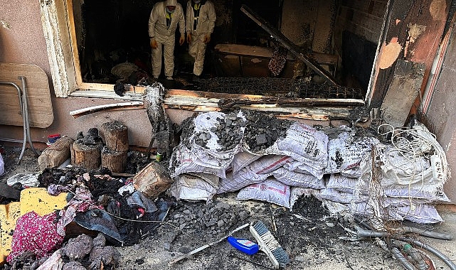 Gölcük Belediyesi ekipleri, Merkez Mahallesi’nde bir binada çıkan yangında büyük hasar gören evde temizlik çalışması yaptı.