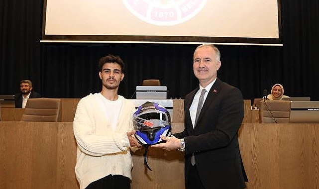 İnegöl’de motosikletiyle kırmızı ışıkta beklerken elindeki çöpü yere atmayarak cebine koyan ve bu örnek davranışı kent kameralarına yansıdıktan sonra Belediye Başkanı Alper Taban’ın sosyal medya hesaplarından paylaşarak teşekkür ettiği Enes Kaya isimli genç, İnegöl Belediye Meclisinde misafir edildi.