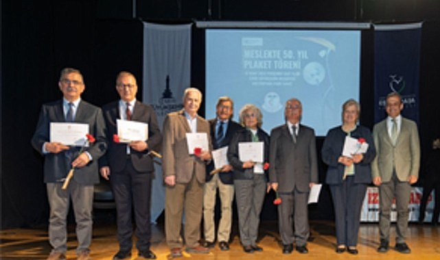 Sağlık çınarlarına onur plaketi 14 Mart Tıp Bayramı nedeniyle İzmir Büyükşehir Belediyesi ve İzmir Tabip Odası iş birliği ile İzmir Sanat’ta düzenlenen “Terk” konulu panelde, meslekte 50 yılı deviren sağlık çınarlarına onur plaketleri takdim edildi.