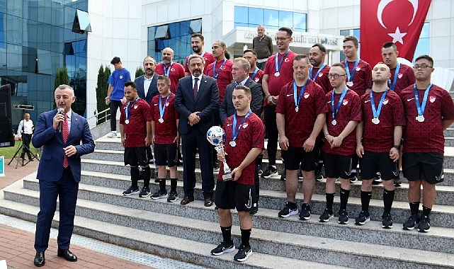 Down Sendromlular Avrupa Şampiyonası’nı kazanan Down Sendromlular Özel Futsal Milli Takımı, Avrupa Kupası ile birlikte Büyükşehir’i ziyaret etti