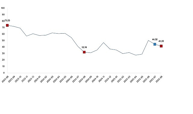 Tarım-ÜFE'de (2020=100), 2025 yılı Ağustos ayında bir önceki aya göre %3,45 azalış, bir önceki yılın Aralık ayına göre %21,83 artış, bir önceki yılın aynı ayına göre %41,55 artış ve on iki aylık ortalamalara göre %36,68 artış gerçekleşti.